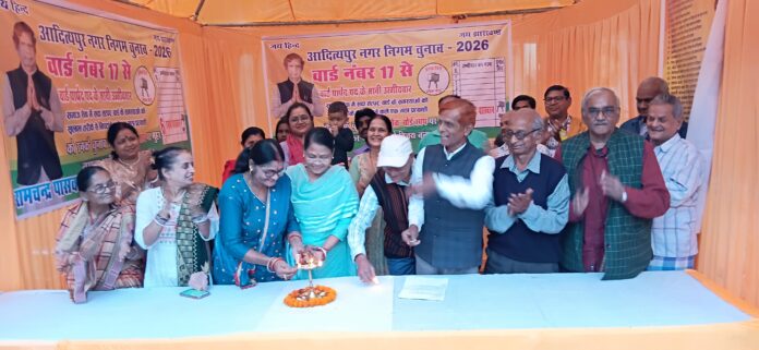 आदित्यपुर : समाजसेवी सह राष्ट्रपति अवार्डी संध्या प्रधान के द्वारा बुधवार को आदित्यपुर प्रभात पार्क के निकट आदित्यपुर नगर निगम वार्ड संख्या 17 के प्रत्याशी रामचंद्र पासवान का चुनावी कार्यालय का उद्घाटन किया गया। इस अवसर पर उन्होंने वार्ड नंबर 17 के मतदाताओं से अपील की कि रामचंद्र पासवान एक कर्मठ, जुझारू और संघर्षशील प्रत्याशी हैं जो पिछली कई वर्षों से वार्ड के सर्वांगीण विकास के लिए काम कर रहे हैं, इसलिए यहां के जनता उन्हें भारी मतों से इस चुनाव में विजय बनाएंगे।
