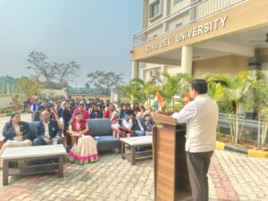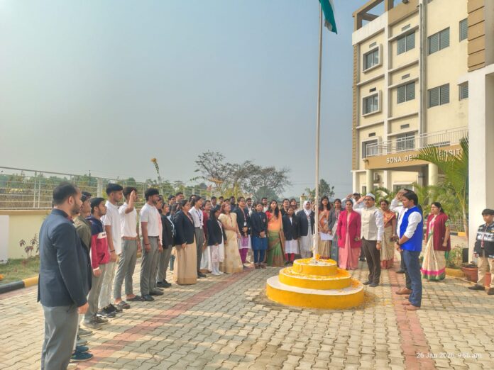 घाटशिला : सोना देवी विश्वविद्यालय घाटशिला परिसर में आज 77 वें गणतंत्र दिवस के अवसर पर कुलाधिपति प्रभाकर सिंह ने राष्ट्रीय ध्वज फहराया. इस अवसर पर उन्होंने कहा कि हम सबको मिलजुल कर राष्ट्रहित में काम करना है. यह तीसरा वर्ष है जब हम अपने विश्वविद्यालय परिसर में यह पर्व मना रहे हैं.