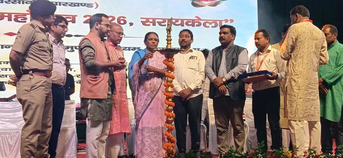 सरायकेला : सिंहभूम लोकसभा क्षेत्र के माननीया सांसद श्रीमती जोबा मांझी ने शनिवार को सरायकेला स्थित बिरसा मुंडा स्टेडियम में 11 से 13 अप्रैल 2026 तक आयोजित होने वाले राजकीय चैत्र पर्व–सह–छऊ महोत्सव 2026 का स्थानीय पूजा-पाठ, रीति-रिवाज एवं पारंपरिक विधि-विधान के साथ विधिवत रूप से दीप जलाकर उद्घाटन किया। इस अवसर पर उन्होंने कहा की छऊ नृत्य केवल सरायकेला और झारखंड में नहीं बल्कि देश दुनिया में ख्याति प्राप्त किया है जो दुनिया के पटल पर सरायकेला-खरसावां और झारखंड का एक अलग पहचान दिया है, इसे संजोग कर रखना सभी की जिम्मेवारी है। उन्होंने इस आयोजन के लिए जिला प्रशासन के पदाधिकारियों का प्रशंसा किया।