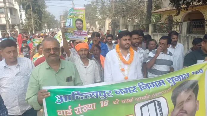 आदित्यपुर: आदित्यपुर नगर निगम वार्ड संख्या 18 के प्रत्याशी, पूर्व विधायक अरविंद सिंह (मालखान सिंह) के भतीजे और दिवंगत समाजसेवी प्रवीण सिंह के पुत्र अंकुर सिंह ने चुनाव प्रचार के अंतिम दिन अपनी पूरी ताकत झोंक दी है। ऑस्ट्रेलिया से MBA की डिग्री हासिल करने वाले अंकुर ने कॉर्पोरेट करियर के बजाय जनसेवा को चुनकर चुनावी मैदान में उतरे हैं।