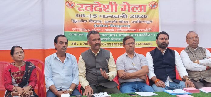 आदित्यपुर : देश का प्रतिष्ठित स्वदेशी मेला दिनांक 6 से 15 फरवरी, 2026 तक फुटबाल मैदान, ईमली चौक, आदित्यपुर में पहली बार आयोजन होने जा रहा है। मेले में शहरवासियों के लिए आकर्षक फूड स्टॉल एवं बच्चों के लिए झूलों का भी प्रावधान किया गया है। मेला प्रतिदिन प्रातः 11 बजे से रात्रि के 9.30 बजे तक रहेगा। प्रति स्थानों के भांति आदित्यपुर में भी मेला मैं प्रवेश निःशुल्क रहेगा। मेले में पंजाब, हरियाणा, उत्तर प्रदेश, उड़ीसा, बंगाल, गुजरात, बिहार, दार्जिलिंग, नगालैंड सहित विभिन्न राज्यों से स्टॉल धारकों की सहभागिता होगी। इस मेले में विभिन्न क्षेत्रों से जैसे हैंडीक्राफ्ट, लघु एवं कुटीर उद्योग के उत्पाद, रियल स्टेट, टेक्सटाइल, हैंडलूम, एफएमसीजी, सामाजिक, हेल्थ सेक्टर, फर्नीचर, सोलर सिस्टम, सजावट खादी आदि के लगभग 110 स्टॉल्स देखने को मिलेंगे। बतौर मुख्य अतिथि राष्ट्रीय प्रौद्योगिकी संस्थान (एनआईटी) के उप-निदेशक प्रो. राम विनय शर्मा, विशिष्ट अतिथि स्वदेशी जागरण मंच क्षेत्रीय संगठक अजय उपाध्याय, इसरो के अध्यक्ष रूपेश कतरियार तथा मुख्य वक्ता स्वदेशी जागरण मंच के राष्ट्रीय सह पर्यावरण प्रमुख बंदेशंकर सिंह के द्वारा 6 फरवरी, 2026 की संध्या 5.00 बजे विधिवत् उद्घाटन किया जाएग। उद्घाटन समारोह की अध्यक्षता सीबीएमडी की बिहार-झारखण्ड प्रमुख मंजू ठाकुर करेंगी।