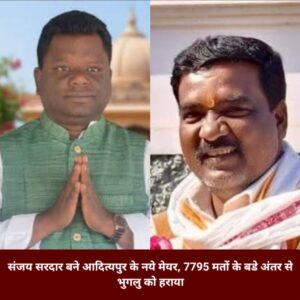 सरायकेला: आदित्यपूर नगर निगम चुनाव में भाजपा समर्थित मेयर प्रत्याशी संजय सरदार ने अपने प्रतिद्वंदी झामुमो समर्थित मेयर प्रत्याशी भुगलू सोरेन को 7795 मतों के ऐतिहासिक अंतर से पराजित किया। संजय सरदार ने कुल 24,615 मत प्राप्त कर शानदार जीत दर्ज की है। जबकि उनके निकटतम प्रतिद्व्ंदी भुगलू सोरेन ने कुल 16,820 मतों के हासिल कर दूसरे स्थान प्राप्त किया।