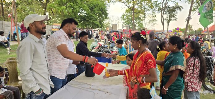 जमशेदपुर: जमशेदपुर तार कंपनी सीटू तालाब के प्रांगण में मंगलवार को मंगला पूजा के शुभ अवसर पर झारखण्ड मुक्ति मोर्चा बिरसानगर समिति के ओर से अध्यक्ष बदल कर्मकार के नेतृत्व में सभी भक्तजनों के लिए सेवा शिविर लगाया गया इस अवसर पर मुख्य अतिथि के रूप में झारखंड मुक्ति मोर्चा नेता महाबीर मुर्मू द्वारा जिसमें सभी भक्तजनों और श्रद्धालुओं के बीच में शरबत चना गुड का वितरण किया गया।