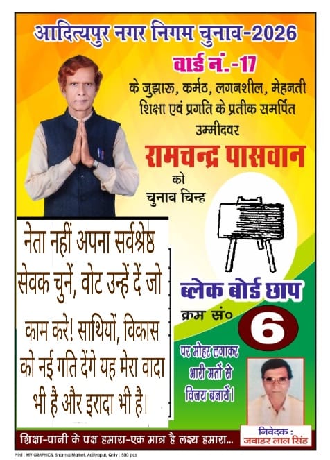 इस संबंध में रामचंद्र पासवान ने बताया कि पिछले दिनों न्यू हाउसिंग कॉलोनी आदित्यपुर में निर्मित वॉटर टैंक से शीघ्र जल आपूर्ति करने की मांग को लेकर आयुक्त को कोल्हान को पत्राचार किया था, इस पत्राचार के आलोक में कोल्हान आयुक्त के द्वारा आदित्यपुर नगर निगम के प्रशासक को शीघ्र उचित कार्रवाई करने का निर्देश दिया गया है। इसी निर्देश को मद्देनजर आदित्यपुर नगर निगम क्षेत्र में सबसे पहले जल आपूर्ति के लिए यहां से शुरुआत होने की संभावना है। इसको लेकर वार्ड नंबर 17 के लोगों के बीच हर्ष व्याप्त है। उन्होंने कहा पिछले कई वर्षों से फरवरी महीने से ही जल संकट उत्पन्न हो जाता है और यहां के लोगों में पानी के लिए हाहाकार मच जाता है। इस बार उम्मीद है कि शीघ्र जलापूर्ति शुरू हो जाएगा और वार्ड नंबर 17 के लोगो को जल संकट से निजात मिल सकता है। उन्होंने कहा कि वे एक सेवक बनकर लगातार सेवा करने किया है। उन्होंने कहा कि बिना वार्ड पार्षद बने हुए लगातार कई वर्षों से वार्ड में जनकल्याण का कार्य करते आ रहे हैं। अगर एक बार मौका यहां की जनता देती है तो एक आदर्श वार्ड बनाने का काम करेंगे।