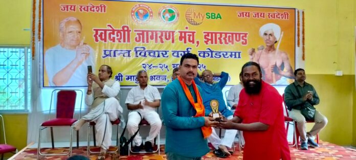 गम्हरिया : स्वदेशी जागरण मंच झारखंड प्रदेश के द्वारा प्रांत संयोजक  राजेश उपाध्याय के नेतृत्व में आयोजित दो दिवसीय 24 एवं 25 मई 2025 को प्रांत विचार वर्ग कोडरमा के झुमरी तिलैया मे हुई। इस विचार वर्ग मे झारखंड प्रदेश के सभी जिलों से मंच के कार्यकर्ता शामिल हुए। कार्यक्रम में अखिल भारतीय सहसंयोजक  धनपत राम अग्रवाल, अखिल भारतीय पर्यावरण प्रमुख श्री दीपक शर्मा,सह प्रमुख वंदे शंकर ,प्रांत विचार विभाग प्रमुख जटाशंकर पांडे  एवं कोडरमा की विधायक डॉ नीरा यादव समेत झारखंड प्रांत के कई वरिष्ठ कार्यकर्ता शामिल थे। इसमें कई जिलों के प्रतिनिधियों को नए दायित्व दिए गए। इस क्रम में सरायकेला खरसावां से अजीत सिंह को जिला संयोजक के रूप मे मनोनीत किया गया। अजीत कुमार सिंह ने कहा कि मंच के वरिष्ठ पदाधिकारियों ने जो जिम्मेवारी दी है उसे पूरी निष्ठापूर्वक से निर्वहन करूंगा।