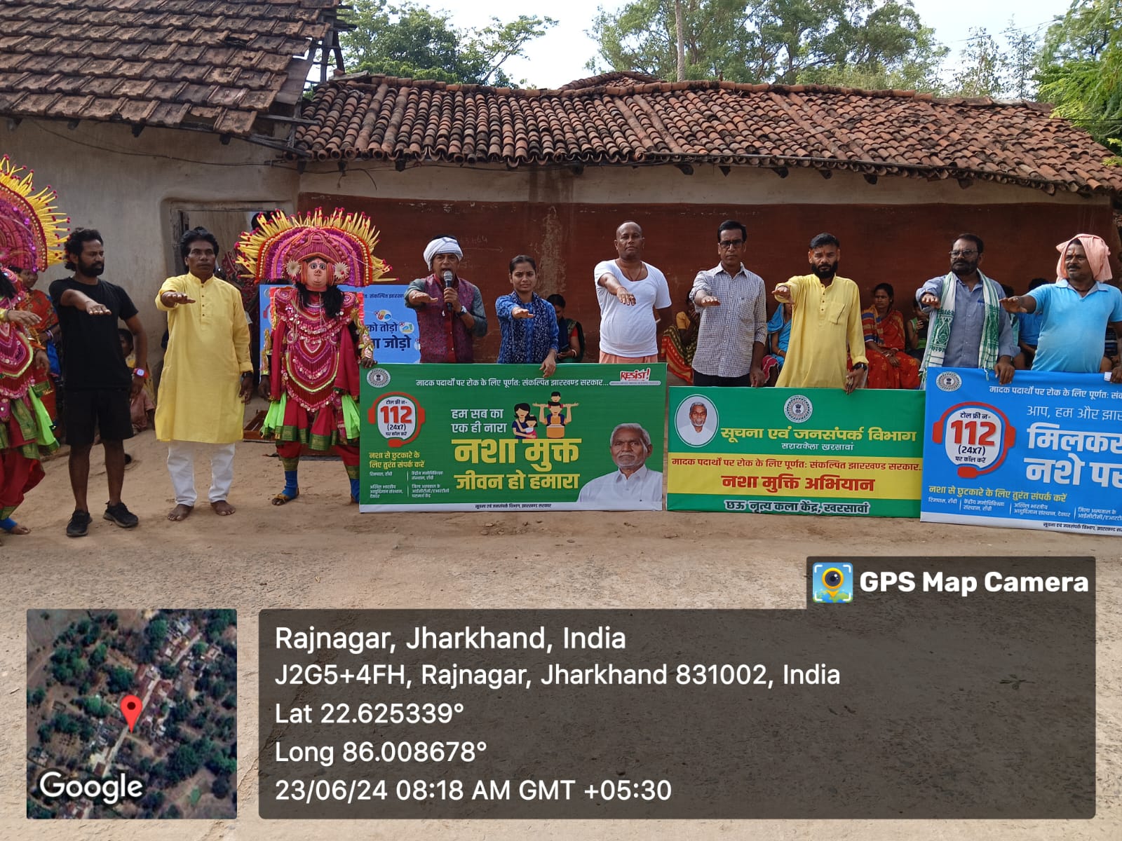 जिला दंडाधिकारी का उपायुक्त  रविशंकर शुक्ला के निर्देशानुसार जिले में 19 जून से 26 जून 2024 तक मादक पदार्थों के विरुद्ध विभिन्न माध्यम से जागरूकता कार्यक्रम चलाया जा रहा है। इसी कड़ी में सोमवार को जिला जनसंपर्क कार्यालय सरायकेला खरसावां के द्वारा जिले के सभी प्रखंड के विभिन्न पंचायतों में नुक्कड़-नाटक, गीत-संगीत के माध्यम से लोगों को मादक पदार्थों के सेवन के दुष्प्रभाव, मादक पदार्थों के सेवन से स्वास्थ्य एवं परिवार पर पड़ने वाली प्रभाव, मादक पदार्थों की बिक्री तथा परिचालन में संयुक्त लोगों पर कानूनी कार्रवाई के प्रावधान आदि के सम्बन्ध में विस्तृत जानकारी साझा कर जागरूक किया गया।