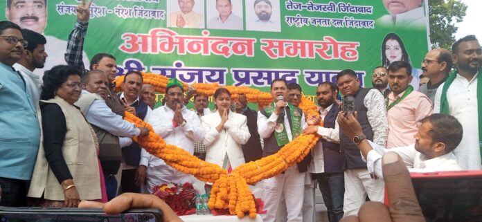 आदित्यपुर : आदित्यपुर के जय प्रकाश उद्यान में झारखंड सरकार में राजद कोटे के श्रम नियोजन प्रशिक्षण एवं उद्योग मंत्री संजय यादव और बिहार की राजद की स्टार प्रचारक सीमा कुशवाहा का अभिनंदन समारोह ऐतिहासिक रहा. अभिनंदन समारोह को संबोधित करते हुए मंत्री संजय यादव ने कहा कि इस अभिनंदन समारोह में उपस्थित होकर मुझे सुखद अनुभव हो रहा है. अपने संबोधन में उन्होंने शहीद निर्मल महतो को श्रद्धांजलि भी दी और ईसाई समुदाय के लोगों को क्रिसमस की शुभकामनाएं भी दी.