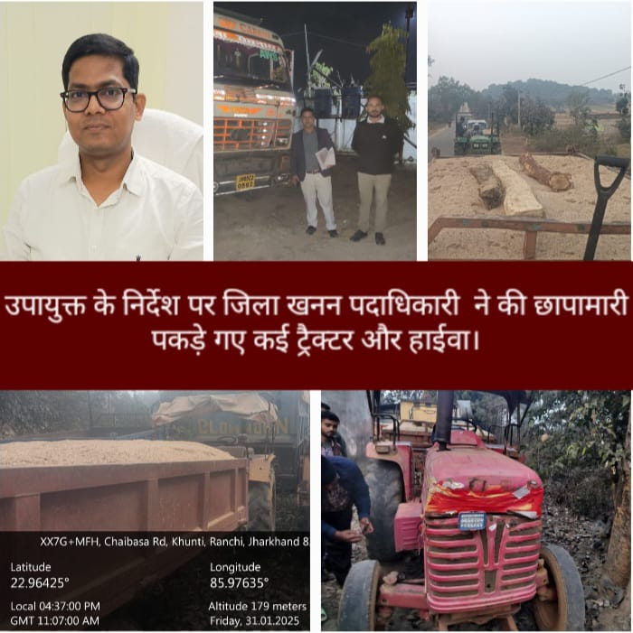 इसके पश्चात करीब शाम 5 बजे अनुमंडल पदाधिकारी (चांडिल), अंचलाधिकारी (ईचागढ़ एवं कुकड़ू) जिला खनन विभाग तथा ईचागढ़ एवं तिरुलडीह थाना की टीम ने संयुक्त छापेमारी अभियान चलाकर तिरुलडीह थाना अंतर्गत 1 अवैध बालू लदे ट्रैक्टर तथा 2250 सीएफटी अवैध बालू भंडारण को जब्त किया।