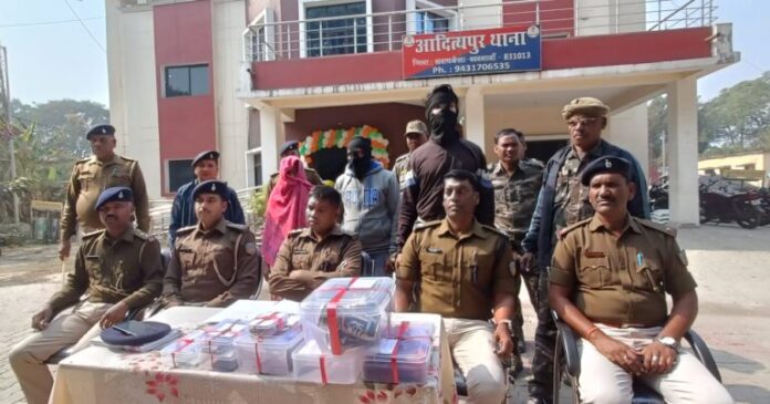 आदित्यपुर : सालडीह बस्ती निवासी सह कंपनी के गार्ड रतन गोराई हत्या पति-पत्नी और वो की कहानी है। पत्नी ने अपने प्रेमी के साथ मिलकर पति की हत्या कर दी। इस मामले में आदित्यपुर पुलिस ने मेनका गोराई, उसके प्रेमी राजू डे और राजू डे के सहयोगी राहुल तिवारी उर्फ गोलू को गिरफ्तार कर जेल भेज दी। इस मामले को लेकर बुधवार को आदित्यपुर थाना में संवाददाता सम्मेलन आयोजित कर सरायकेला के एसडीपीओ समीर कुमार सेवइयां बताया कि आदित्यपुर औद्योगिक क्षेत्र आरआईटी मोड़ के पास स्थित प्रीमियम प्लास्टिक में गार्ड के रूप में कार्यरत रतन गोराई के 25 जनवरी से लापता होने के बाद पत्नी मेनका गोराई ने आदित्यपुर थाना में गुमसुदगी की शिकायत की थी। इधर मामले के बाद पुलिस द्वारा पड़ताल शुरू की गई। अगले दिन 26 जनवरी को आदित्यपुर भाटिया बस्ती टोल प्लाजा के निकट झाड़ियो से मृत रतन गोराई का शव बरामद किया गया था। जिस पर चाकू से वार के गंभीर निशान थे।मामले की गंभीरता को देखते हुए सरायकेला पुलिस अधीक्षक के निर्देश पर एसडीपीओ समीर कुमार सेवइयां ने टीम का गठन किया और अनुसंधान प्रारंभ किया। जिसमें इस बात का खुलासा हुआ कि मृतक की पत्नी मेनका गोराई का राजू डे नामक व्यक्ति के साथ अवैध संबंध था। जिसमें मृतक आड़े आ रहा था। इसी को लेकर पत्नी ने अपने प्रेमी राजू डे के साथ मिलकर हत्या की साजिश रची जिसमें राजू डे ने अपने सहयोगी राहुल तिवारी उर्फ गोलू के साथ मिलकर रतन गोराई की गला घोटकर तथा चाकू से वार हत्या की थी। इस कांड के लिए आरोपी राहुल तिवारी उर्फ गोलू को 6 हजार अदा किए गए थे। पुलिस ने हत्याकांड में प्रयुक्त चाकू, गाला दबाने में प्रयुक्त गमछा, मोटरसाइकिल, मृतक का मोबाइल फोन आदि बरामद कर लिया है।