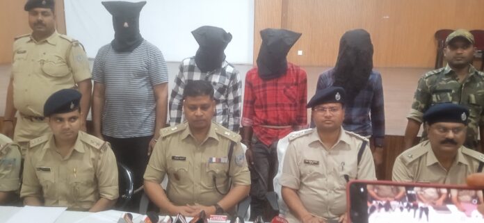 सोनारी निवासी रवि अग्रवाल की पत्नी ज्योति अग्रवाल की हत्या का मामला को सरायकेला पुलिस ने सोमवार को आदित्यपुर स्थित ऑटो क्लस्टर सभागार में प्रेस कॉन्फ्रेंस कर खुलासा किया है। इस संबंध में सरायकेला के पुलिस अधीक्षक मनीष टोपो ने बताया कि इस हत्या कांड में मृतिका ज्योति अग्रवाल की पति रवि अग्रवाल की संलिपिता पाई गई है। रवि अग्रवाल ने ही अपने चालक मुकेश मिश्रा के माध्यम से सुपारी किलर के द्वारा पत्नी की हत्या कराया है । उन्होंने बताया कि इस मामले में पति रवि अग्रवाल सहित चार की गिरफ्तारी हो गई है अन्य दो आरोपी अभी भी फरार हैं। इसकी भी गिरफ्तारी के लिए पुलिस लगातार छापामारी कर रही है। उन्होंने बताया कि गिरफ्तार आरोपियों से स्विफ्ट कर देसी करता और जिंदा कारतूस बरामद किया गया है। सरायकेला पुलिस अधीक्षक ने बताया की ज्योति अग्रवाल की हत्या की साजिश उसके पति रवि अग्रवाल ने ही रची थी। घटना के बाद मृतिका ज्योति अग्रवाल के पिता प्रेमचंद अग्रवाल ने अपने दमाद रवि अग्रवाल के खिलाफ षडयंत्र के तहत इनकी बेटी को गोली मारकर हत्या करने के आरोप में लगाया गया था। जिसके आलोक में उपरोक्त काण्ड दर्ज कर अनुसंधान प्रारम्भ किया गया। पुलिस अधीक्षक सरायकेला के द्वारा अनुमंडल पुलिस पदाधिकारी चाण्डिल के नेतृत्व में एक दल का गठन किया गया। अनुसंधान के क्रम में तकनिकी तथा मानवीय साक्ष्य के आधार पर काण्ड के प्राथमिकी अभियुक्त रवि अग्रवाल को गिरफ्तार किया गया। रवि अग्रवाल का शादी के कुछ समय बाद से ही पत्नी ज्योति अग्रवाल से अनबन शुरु हो गया तथा आये दिन लड़ाई झगड़ा बढ़ते चला गया । जिसे पत्नी को सहन नहीं कर पा रहे थे। जिसके बाद रवि अग्रवाल, मुकेश मिश्रा तथा उनके चार अन्य साथी के साथ सुपारी देकर अपनी पत्नी को जान मारने की योजना बनाई गई। हालांकि पूर्व में दो बार हत्या की साजिश पहले भी रची गई थी, लेकिन विफल हो गया था। जिसके बाद 29 मार्च को निर्धारित योजना के अनुसार रवि अग्रवाल ने अपनी पत्नी तथा बच्चो के साथ बालीगुमा स्थित मिनी पंजाब होटल से खाना खाकर चाण्डिल थाना अंतर्गत कान्दरखेड़ा एवं वेभ इण्टरनेश्नल होटल के बीच NH-33 के किनारे उल्टी करने के बहाने अपना कार खड़ा किये। जिसके तुरंत बाद मुकेश मिश्रा तीन अन्य साथी के साथ उक्त स्थल पर पहुँचे और ज्योति अग्रवाल को उपरोक्त ने सुनोजित तरीके से कनपट्टी पर बंदुक से गोली मारकर हत्या कर दिये। अनुसंधान के क्रम में काण्ड के रवि अग्रवाल तथा उनके तीन अन्य सहयोगी को हथियार के साथ गिरफ्तार किया गया है। पुलिस ने एक लोहे का लोडेड देशी कट्टा, पंकज सहानी के पास से एक एण्ड्रॉएट स्मार्ट फोन बरामद किया है। छापेमारी अभियान में चांडिल एसडीपीओ सुनिल कुमार रजवार, पु०नि० अजय कुमार, चां
