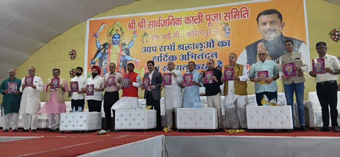 आदित्यपुर: श्रीश्री सार्वजनिक काली पूजा समिति के द्वारा एमआईजी मैदान, आदित्यपुर-02 में बनवाए गए पूजा पंडाल का उद्घाटन पूर्व केंद्रीय मंत्री अर्जुन मुंडा व विधायक सरयू राय ने किया। इस अवसर पर कमेटी के द्वारा अतिथियों को सम्मानित किया गया।