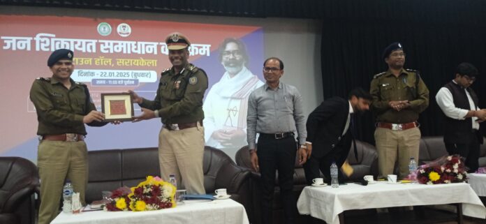 सरायकेला : झारखंड पुलिस मुख्यालय के निर्देशानुसार बुधवार को सरायकेला स्थित टाउन हॉल में जन शिकायत समाधान कार्यक्रम का आयोजन किया गया. इस अवसर पर मुख्य अतिथि झारखंड सशस्त्र बल के डीआईजी कार्तिक एस. ने दीप प्रज्वलन कर कार्यक्रम का शुभारंभ किया.