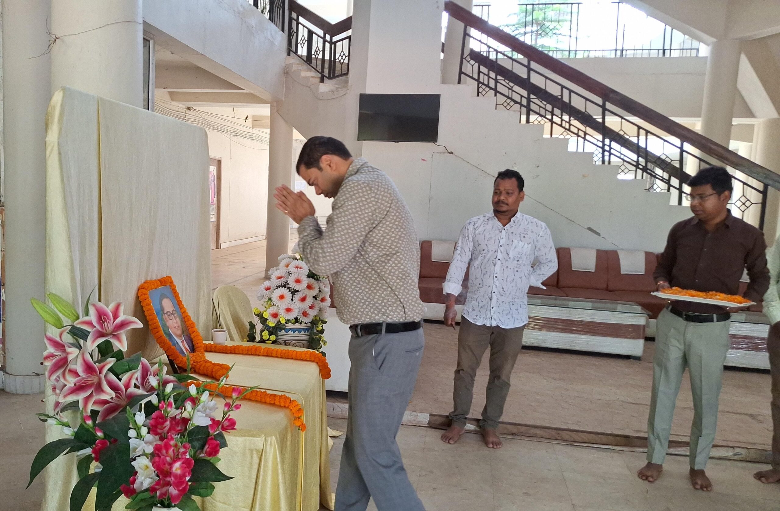 हम सभी को उन्हें नमन करना चाहिए और उनके द्वारा बताए हुए मार्ग तथा देशहित में किए गए कार्यों का अनुसरण करते हुए समाज व राष्ट्र के नव निर्माण में अहम भूमिका निभानी चाहिए। उन्होंने आगे कहा कि संविधान के रचयिता ,ज्ञान और विलक्षण प्रतिभा संपन्न डॉ आंबेडकर ने प्रतिकूल परिस्थितियों में भी एक शिक्षाविद, कानून विशेषज्ञ, अर्थशास्त्री, राजनीतिज्ञ और समाज सुधारक के रूप में काम किया। उन्होंने भारतीय स्वतंत्रता संग्राम के सामाजिक -आर्थिक न्याय के विचार को भारतीय संविधान के रूप में साकारित किया, समतामूलक समाज व राष्ट्र के निर्माण में अभूतपूर्व योगदान दिया। बाबा साहब का पूरा जीवन ही प्रेरणास्रोत है और विचारों, आदर्शो को जीवन में आत्मसात करने की आवश्यकता है। इस अवसर पर सहायक निदेशक समाजिक सुरक्षा सह नजारात उप समाहर्ता अनिल टुडू ,सोशल मीडिया प्रसार पदाधिकारी नंदन उपाध्याय समेत विभिन्न विभागो के सहायक एवं कर्मचारी उपस्थित थे।